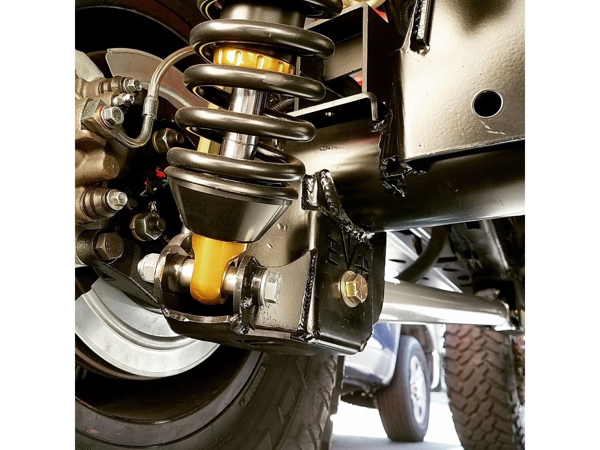 This kit raises the rear lower shock location approximately 1.5”. It is recommended that you cycle your suspension before and after installation and check for travel and interference issues. This kit requires cutting and grinding. This kit may require new (shorter) rear swaybar endlinks and/or coil spring retainers. Welding recommended